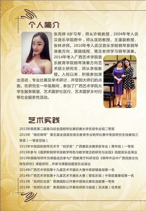 【演艺信息】张芮婷艺术硕士钢琴独奏音乐会 来源: 作者: 发布时间:2015-11-23 21:43:49 浏览次数: 次 【字体:小 大】 时间:2015年11月24日晚7:30 地点:广西艺术学院南湖校区音乐厅 分享到: 【打印正文】