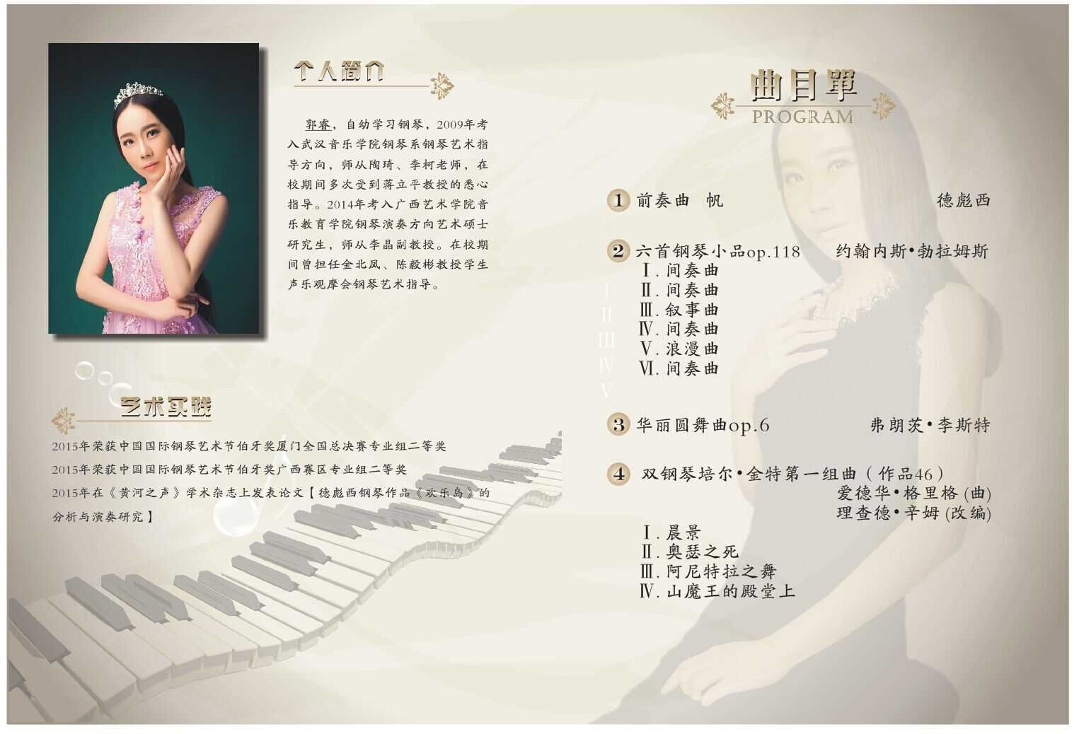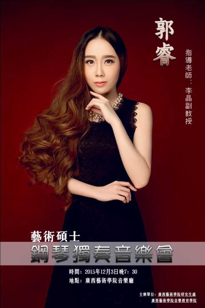 【音乐会预告】马利亚 郭睿艺术硕士钢琴独奏音乐会 来源: 作者:何昆 发布时间:2015-12-01 21:23:09 浏览次数: 次 【字体:小 大】 时间:2015年12月3日(周四)晚7:30 地点广西艺术学院南湖校区音乐厅 欢迎大家的光临。 分享到: 【打印正文】