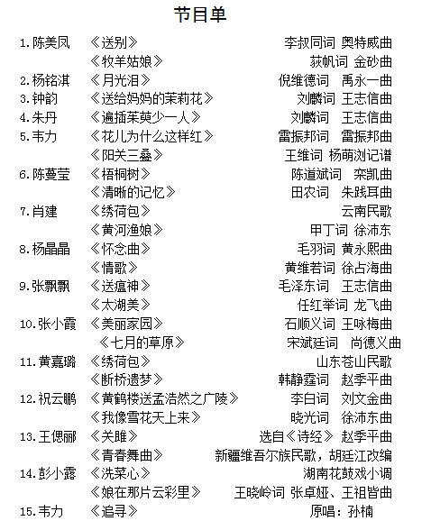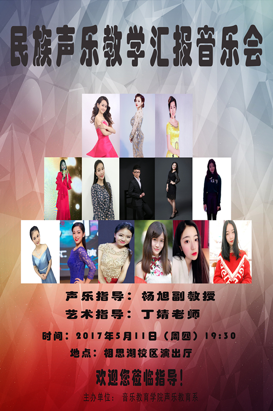 【演艺信息】杨旭副教授民族声乐教学汇报音乐会 来源: 作者:黄秋燕 发布时间:2017-05-07 22:50:38 浏览次数: 次 【字体:小 大】 杨旭副教授民族声乐教学汇报音乐会 于2017年5月11日(周四)19:30在相思湖演出厅精彩上演 大家走过路过千万别错过哦! 分享到: 【打印正文】