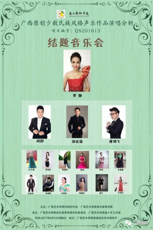 本项目旨在对声乐演唱中所经常涉及到的广西原创少数民族风格声乐作品进行研究分析,通过对歌词的解读和对旋律的分析,进一步与作品的词曲作者沟通创作意图及创作背景,最后把握住作品的民族风格特点,运用科学的发声方法咬字行腔,声情并茂的刻画栩栩如生的音乐形象,将少数民族特色的风格展现出来,继而为广西民族音乐的传承奠定基础。