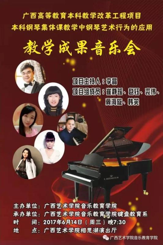2017年6月14日(周三),FUN88乐天使在线登录本科钢琴集体课教学中钢琴艺术行为的应用教学成果音乐会在广西艺术学院相思湖演出厅精彩上演,欢迎广大师生到场观看指导!
