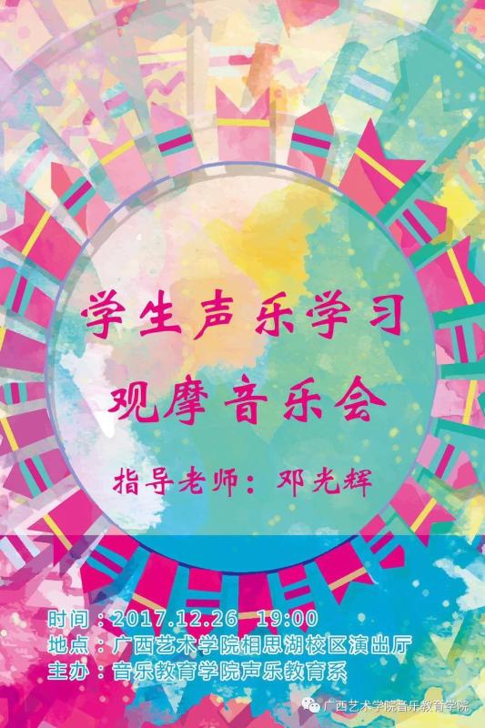 FUN88乐天使在线登录邓光辉老师学生声乐学习观摩音乐会即将于2017年12月26日19:00在广西艺术学院相思湖校区演出厅精彩上演,欢迎广大师生前往观看指导!