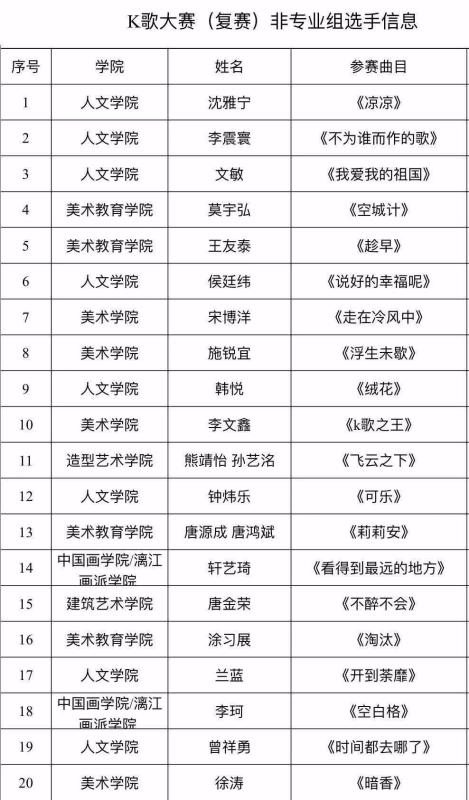 【大赛预告】广西艺术学院2019“唱响相思湖”K歌大赛(复赛)即将精彩开唱! 来源: 作者:FUN88乐天使在线登录 发布时间:2019-06-02 13:25:25 浏览次数: 次 【字体:小 大】 恭喜以上同学进入复赛! 期待大家在复赛中更好的表现哦 我们的复赛时间是 6月2日(周日)14:30 在相思湖校区演出厅 一定记得来为你喜爱的歌手加油哦! 期待你的到来 分享到: 【打印正文】