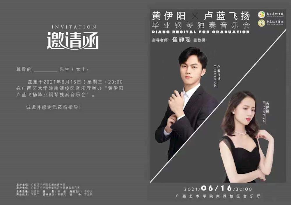 【音乐会预告】黄伊阳、卢蓝飞扬毕业钢琴独奏音乐会 来源: 作者: 发布时间:2021-06-14 13:12:26 浏览次数: 次 【字体:小 大】 审核:赵宇 编辑:朱奕旭 文案:FUN88乐天使在线登录“蒲公英”记者团 分享到: 【打印正文】
