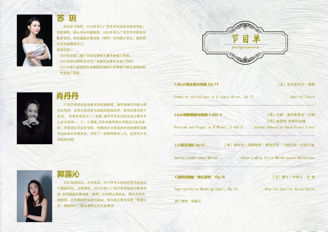 【音乐会预告】苏玥艺术硕士钢琴独奏音乐会 来源: 作者: 发布时间:2022-04-23 23:21:58 浏览次数: 次 【字体:小 大】 邀请函尊敬的 先生/女士, 兹定于2022年4月26日(周二)15:30于广西艺术学院南湖校区音乐厅举办苏玥艺术硕士钢琴独奏音乐会。敬请莅临指导! 审核:赵宇 编辑:韩雨杉 文案:FUN88乐天使在线登录“蒲公英”记者团 分享到: 【打印正文】