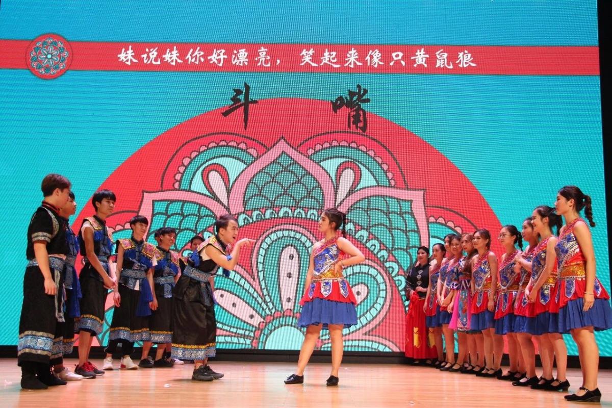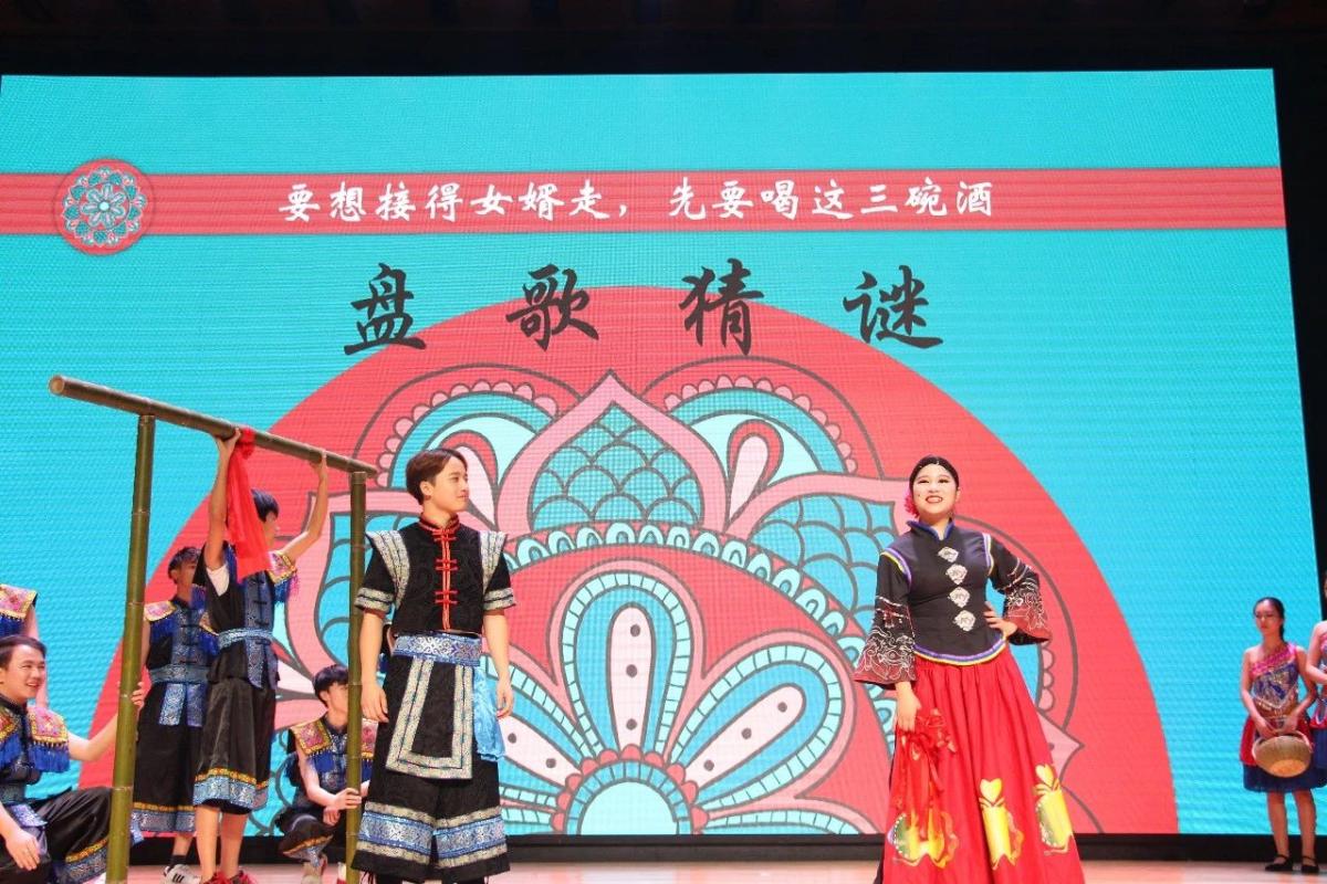 晚会由风趣又有创意的舞蹈《Boom》拉开序幕。民族歌曲演唱《三月桃花心中开》让我们沉浸在醉人的歌声中;由钢琴、非洲鼓合奏的《时光穿梭》让我们领略到乐器合奏带给我们的震撼;随后流行歌曲串烧给现场增加了气氛,还有女子独舞《雀之灵》,更好的展现了舞蹈的形体美;抖音神曲的舞蹈串烧也引得观众笑声连连;民族乐剧《欧贵》将民族文化融于音乐剧中,表现广西、云南至今仍流行“欧贵”的女娶男嫁婚俗,同学们生动的表演,舞台和服装的特色设计和极具民族风格的唱腔,赢得观众的阵阵掌声,掀起了现场的一个小高潮。接着,由几位同学带来的风趣幽默的小品《相亲》,让观众们开怀大笑的同时,也能细细品味其中蕴含的道理;最后,全体五班同学在大合唱《我喜欢》中,回顾过去一年的点点滴滴,演出在欢乐与感动中落下帷幕。