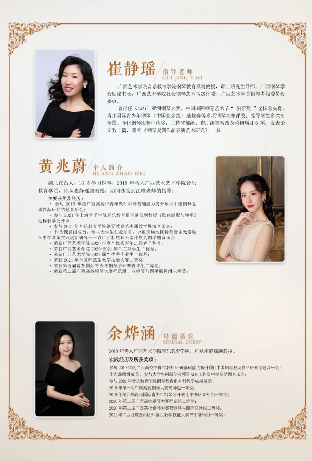 【音乐会预告】黄兆蔚毕业钢琴独奏音乐会 来源: 作者: 发布时间:2022-05-22 00:16:46 浏览次数: 次 【字体:小 大】 审核:梁姚姚 编辑:黄小童 文案:FUN88乐天使在线登录“蒲公英”记者团 分享到: 【打印正文】